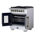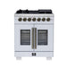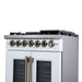 Forno Capriasca 30 Inch Freestanding French Door Dual Fuel Range in White with Antique Brass Accessories, 5 Burners, True Convection Oven