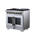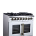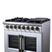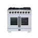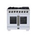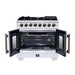 Forno Capriasca 36 Inch Freestanding French Door Dual Fuel Range in White with Antique Brass Accessories, 6 Burners, True Convection Oven