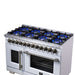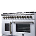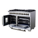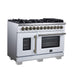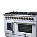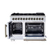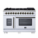 Forno Capriasca 48 Inch Freestanding French Door Dual Fuel Range in White with Antique Brass Accessories, 8 Burners, True Convection Oven