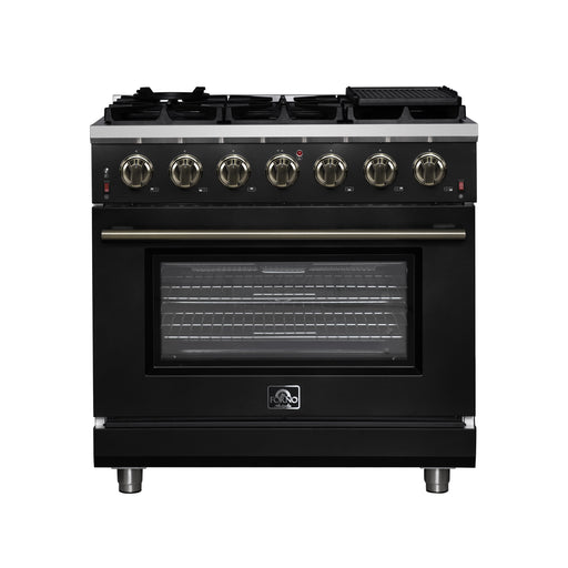 View full detailsForno Galiano 36-inch Dual Fuel Range in Black & Antique Brass Design, 6 Sealed Burners 83,000 BTU, 5.36 cu.ft. True Convection Oven