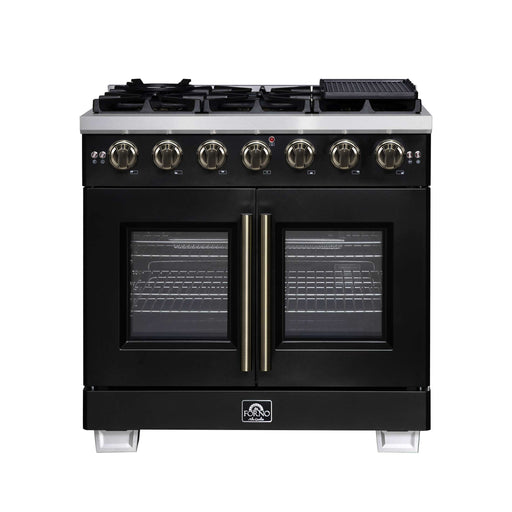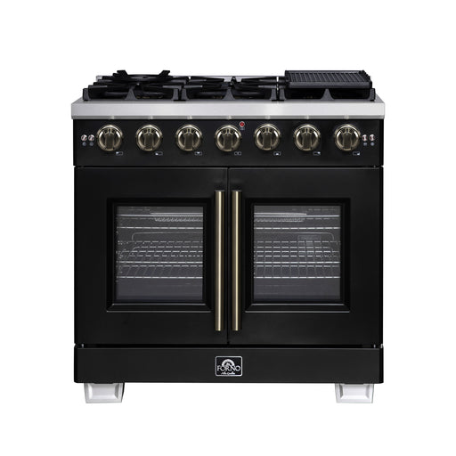 FORNOThe 36 Inch Forno Capriasca French Door Gas Range in Black elevates your home kitchen with professional style and performance. Its unique French d...