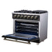 The Forno Massimo 36 Inch Gas Range harmonizes professional style and durability with Antique Brass. Its 6 sealed burners, totaling 83,000 BTU, include a precision 20,000 BTU dual-ring burner that can simmer at 1,000 BTU. Continuous cast iron grates ensure stability on the enamel surface. The 5.36 cu.ft. convection oven, with a blue enamel interior and 3-layer glass window, reaches 30,000 BTU for versatile cooking. It features 2 telescopic racks, an air fryer kit, a wok support, a reversible griddle, an LP conversion kit, and durable zinc-coated metal knobs. Elevate your kitchen with performance, convenience, and enduring elegance.